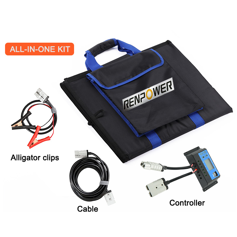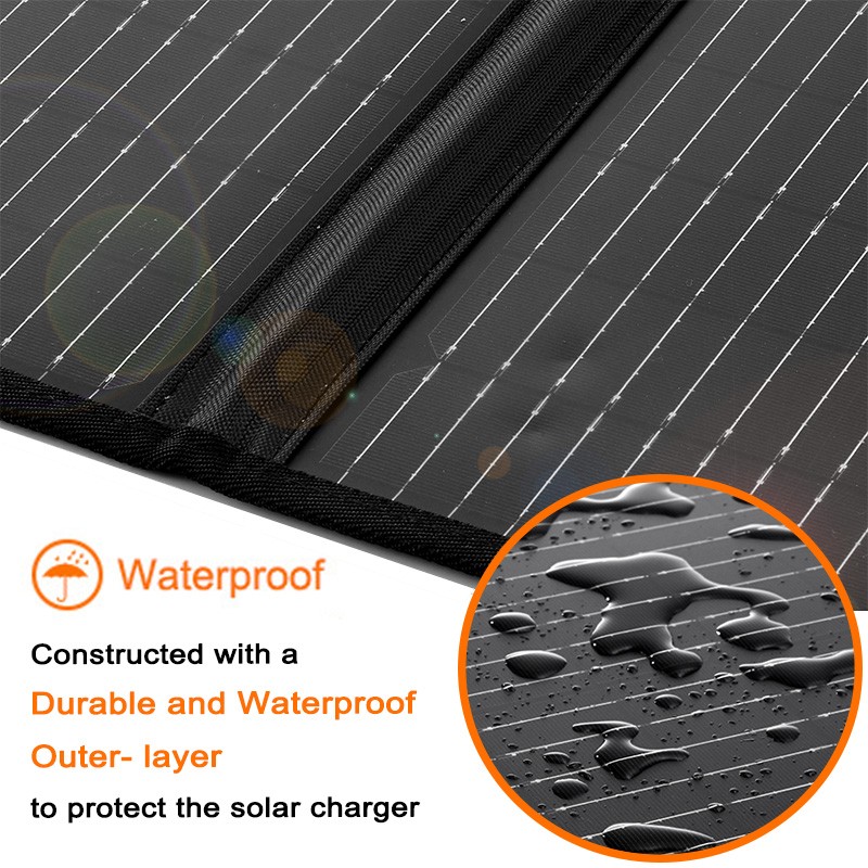 Renpower 160w Portable Solar Blanket on valmistettu tehokkaalla monokiteisellä aurinkokennolla, saat paremman tehon, vaikka paneeli on pienempi kuin perinteinen malli. Ja aurinkopeitto on hyvin suojattu paksussa kangastaskussa ommeltu. Saatavilla on käytännöllinen kantokahva, jota on helppo kuljettaa ja käyttää. Se on valmistettu kestävästä ja vedenpitävästä nailonista ja säädettävästä kannakkeesta, joka vastaanottaa tehokkaimman auringonvalon. Oikosulku- ja ylijännitesuojateknologia pitää sinut ja laitteesi turvassa.